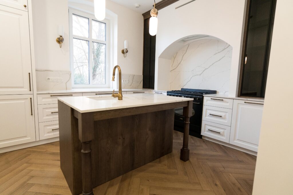 Marzysz o klasycznej, eleganckiej kuchni z nutą nowoczesności? Zapraszamy do obejrzenia naszej niedawnej realizacji, gdzie klasyka łączy się z nowoczesnością!